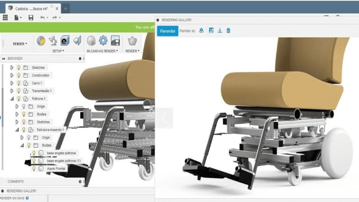 A cadeira tinha um mecanismo de manobra especial que permitia que o cadeirante não precisasse trocar de assento nem ser carregado dentro do avião, um processo que costuma gerar muitas lesões e desconfortos em passageiros com mobilidade limitada. Por essa invenção fomos reconhecidos numa cerimônia que ocorreu em outubro de 2019.